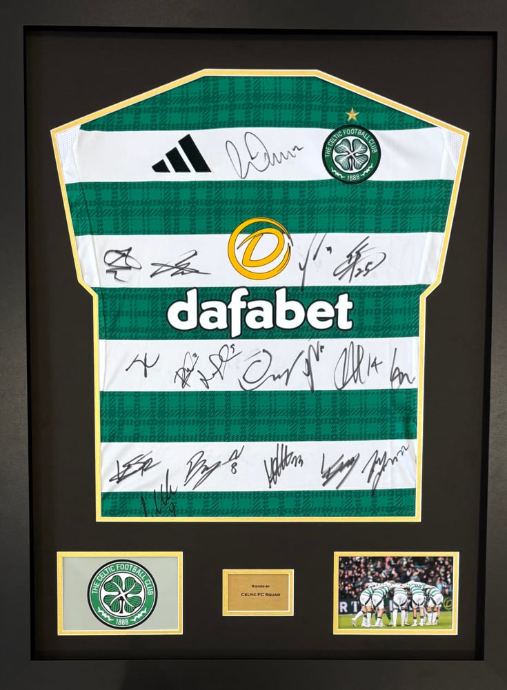 Signed Framed 2025/26 Squad Celtic FC Shirt comes with COA & Photo Proof
